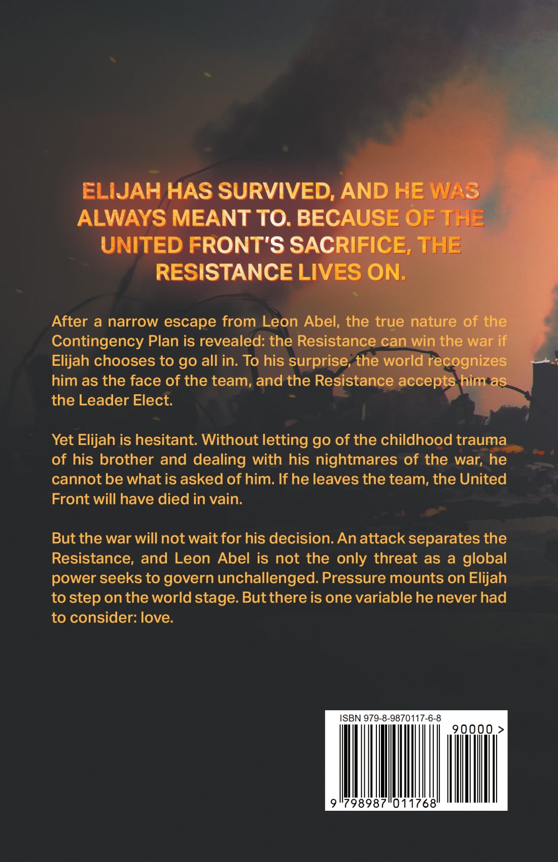 But the war will not wait for his decision. An attack separates the Resistance, and Leon Abel is not the only threat as a global power seeks to govern unchallenged. Pressure mounts on Elijah to step on the world stage. But there is one variable he never had to consider: love.
