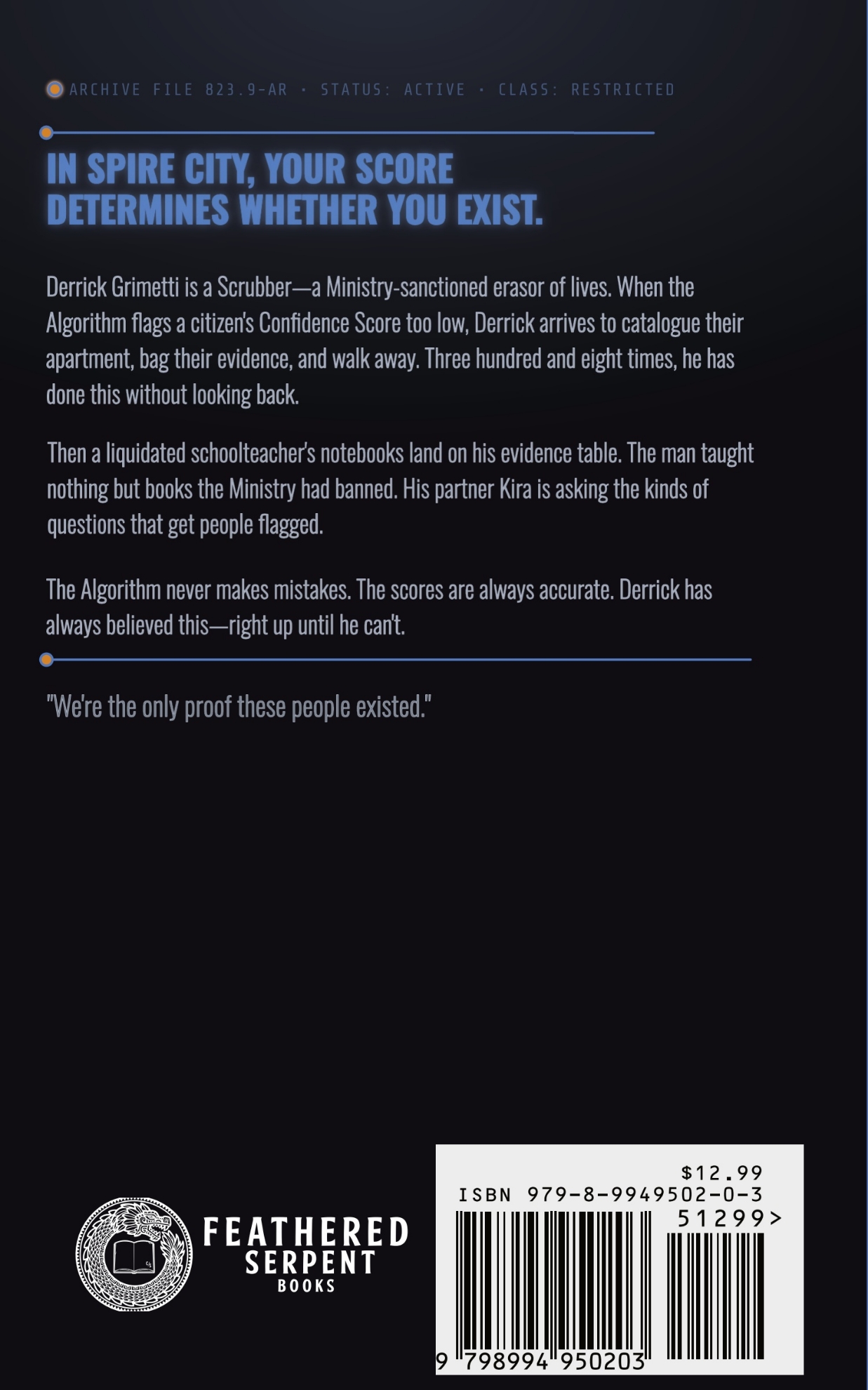 A list of names hidden in a dead teacher's evidence box. His brother's name is seventh on the page. One stolen document. One partner who notices everything, and a ticking clock, twelve days before the Algorithm flags Lawrence Grimetti for acquisition and erases everything.