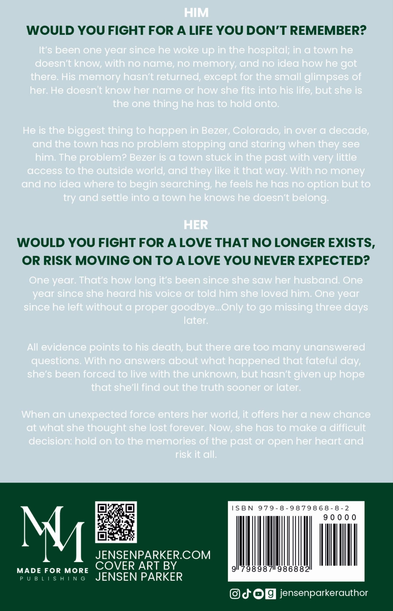 It’s been one year since he woke up in the hospital; in a town he doesn’t know, with no name, no memory, and no idea how he got there. His memory hasn’t returned, except for the small glimpses of her. He doesn’t know her name or how she fits into his life, but she is the one thing he has to hold onto.