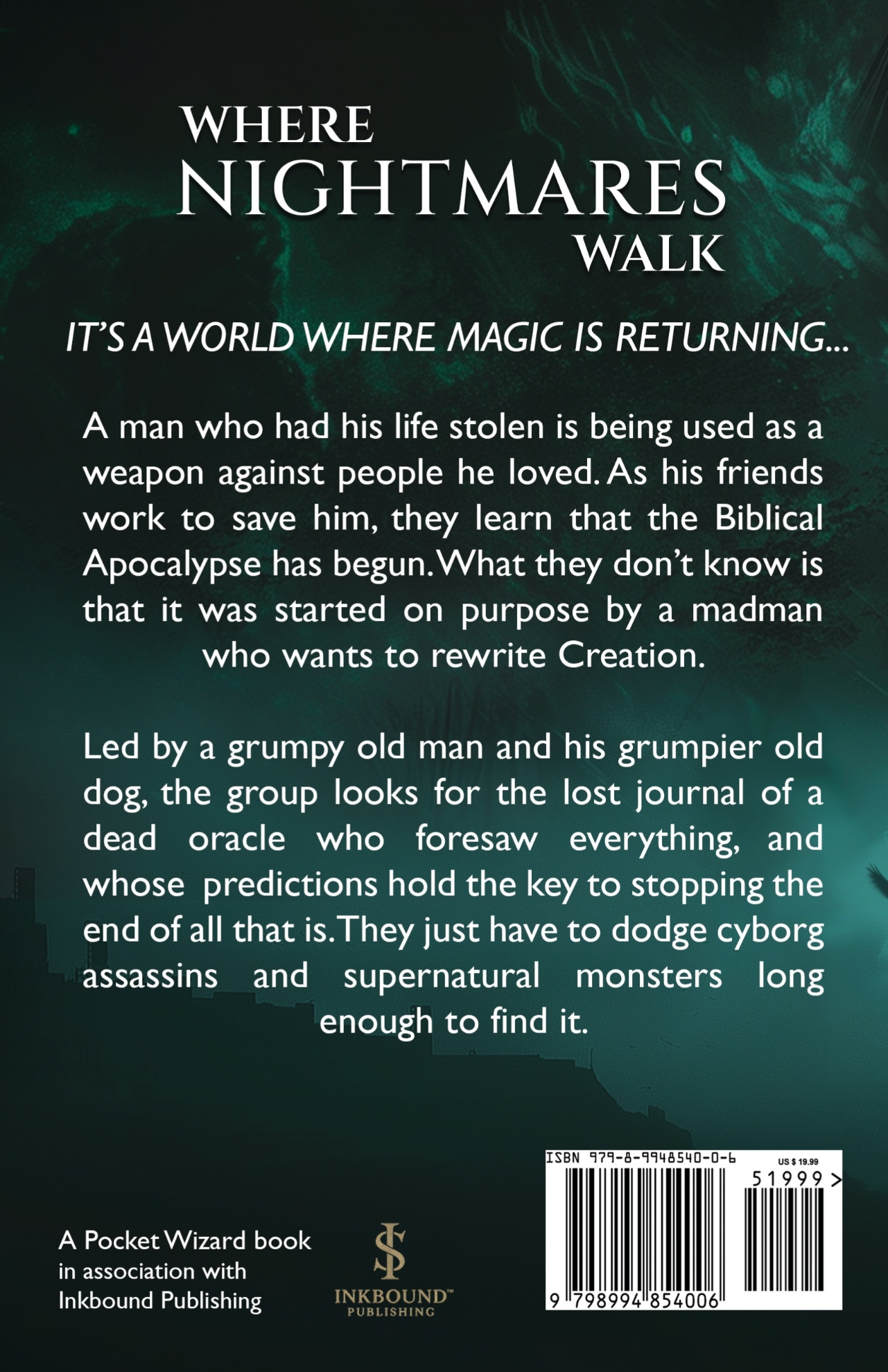 Teaming up with a grumpy old man and his grumpier old dog, they have to escape cyborg assassins and supernatural monsters as they look for the lost journal of a long-dead psychic whose predictions hold the key to saving the world. They just have to survive long enough to find it.